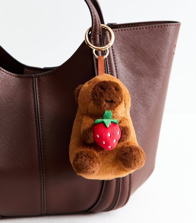 The New Look Brown Capybara Plush Bag Charm is made from plush.