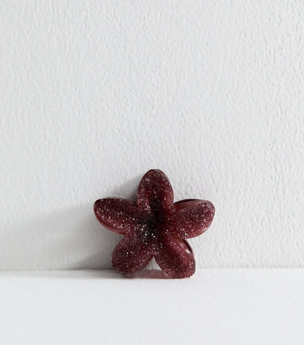 This brown hair claw clip adds a touch of elegance to your everyday style. Its tropical flower shape is topped with gem embellishments for a pretty sparkle. Ideal for casual or special occasions.