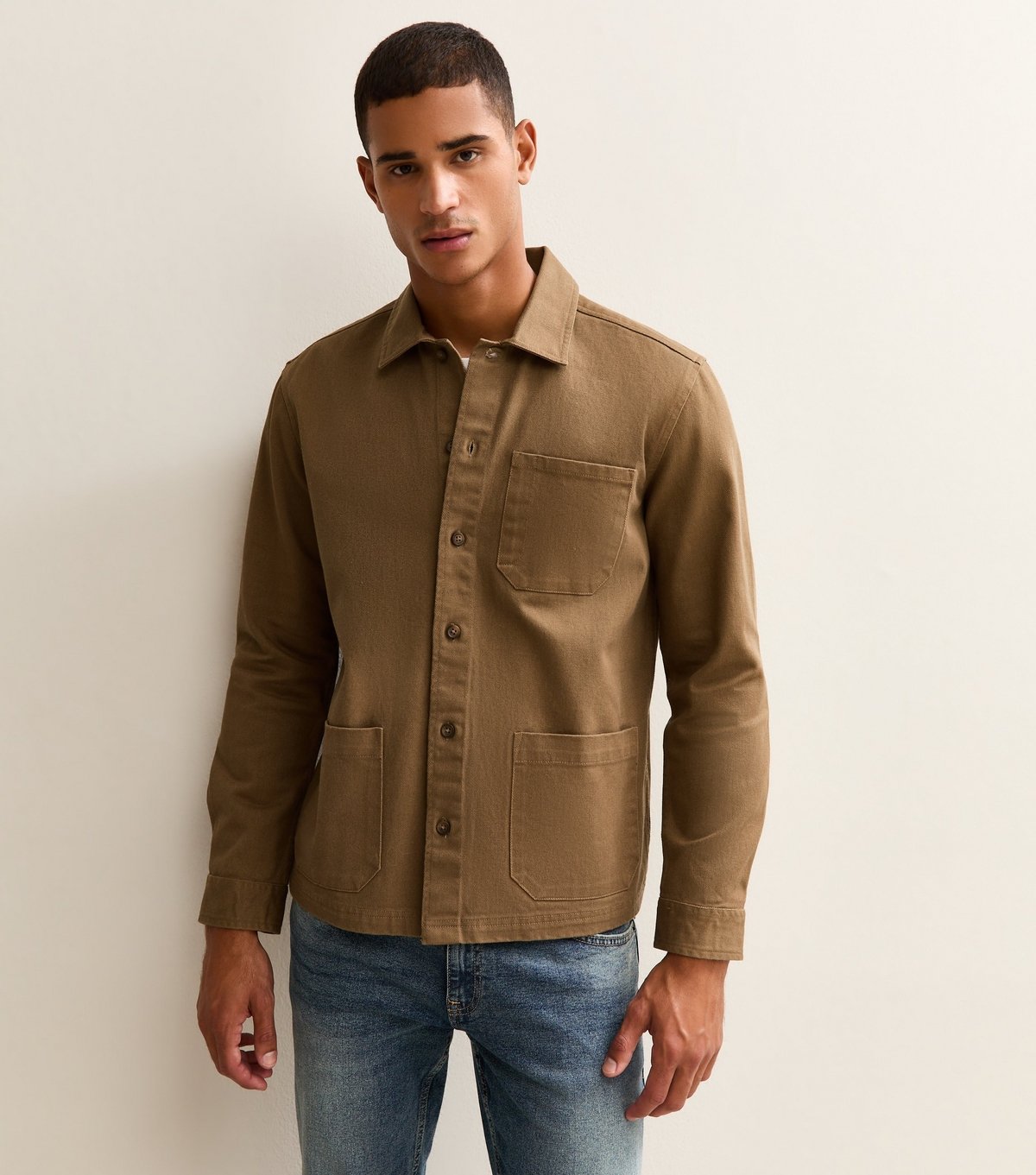 The New Look Brown Woven Collared Shacket is made from woven cotton.