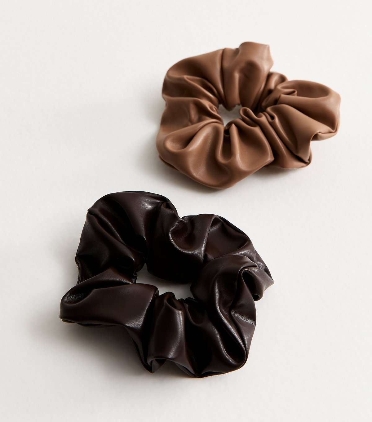 The New Look Brown Faux Leather Scrunchies Pack of 2 is available in sizes ONE SIZE.