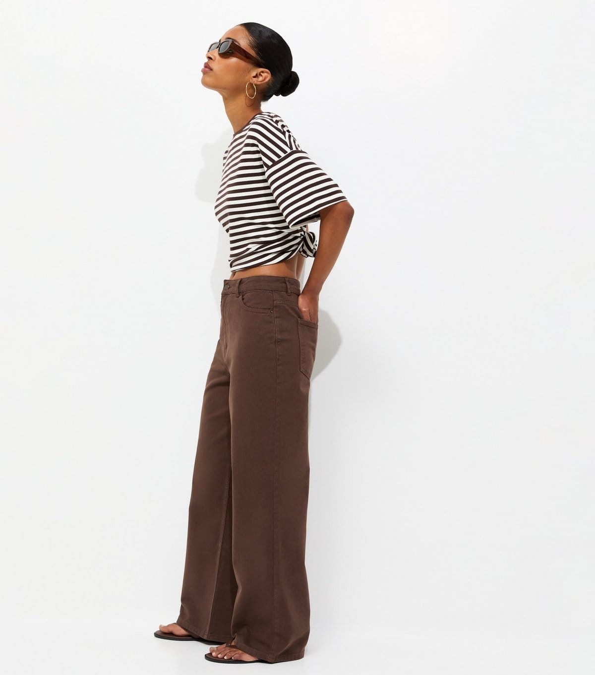 Flattering wide-leg jeans in rust brown from New Look. Featuring a high waist and classic five-pocket construction, these jeans are perfect for a range of occasions.