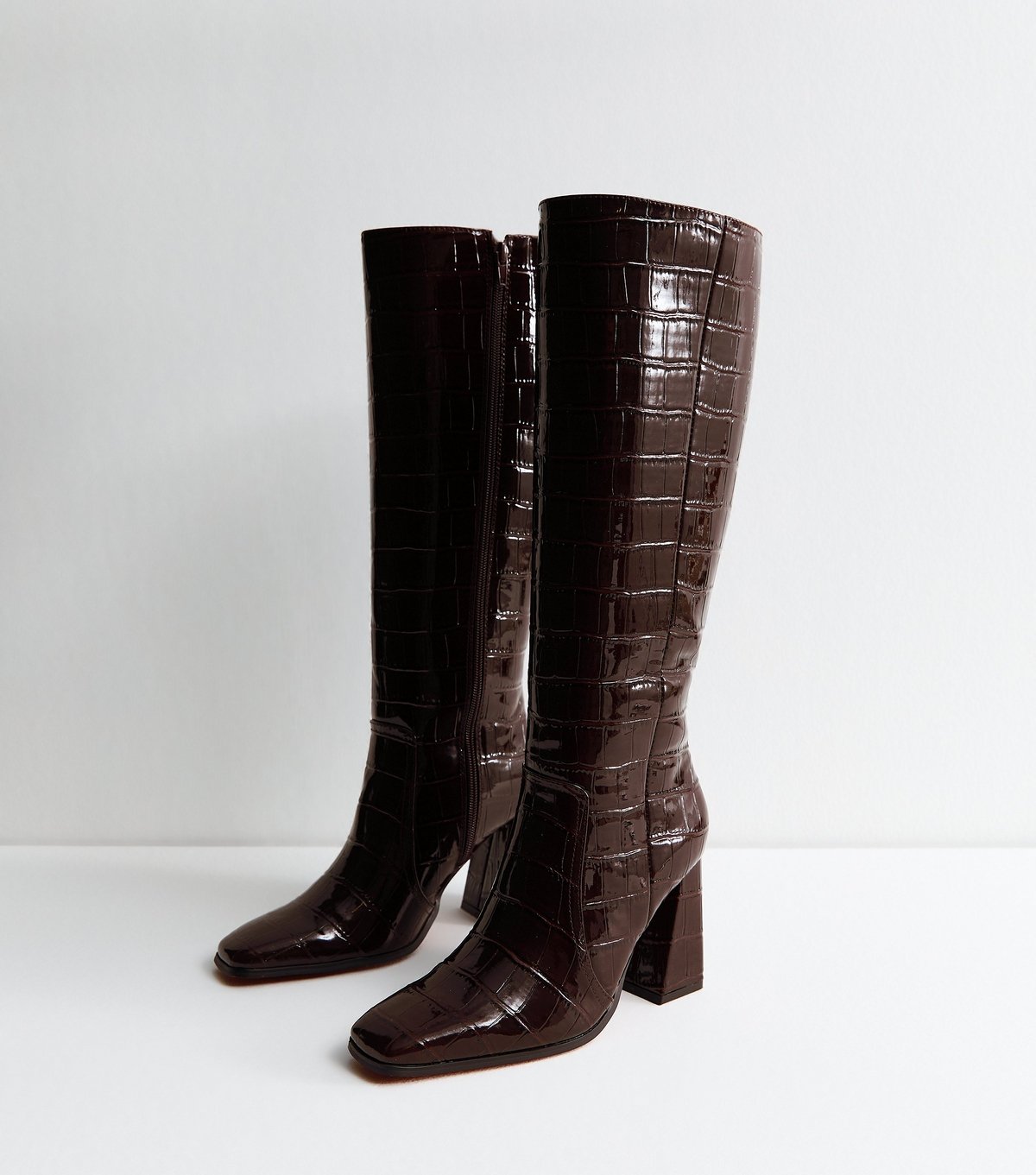The New Look Rust Crocodile Effect Faux Leather Boots is available in sizes 9.