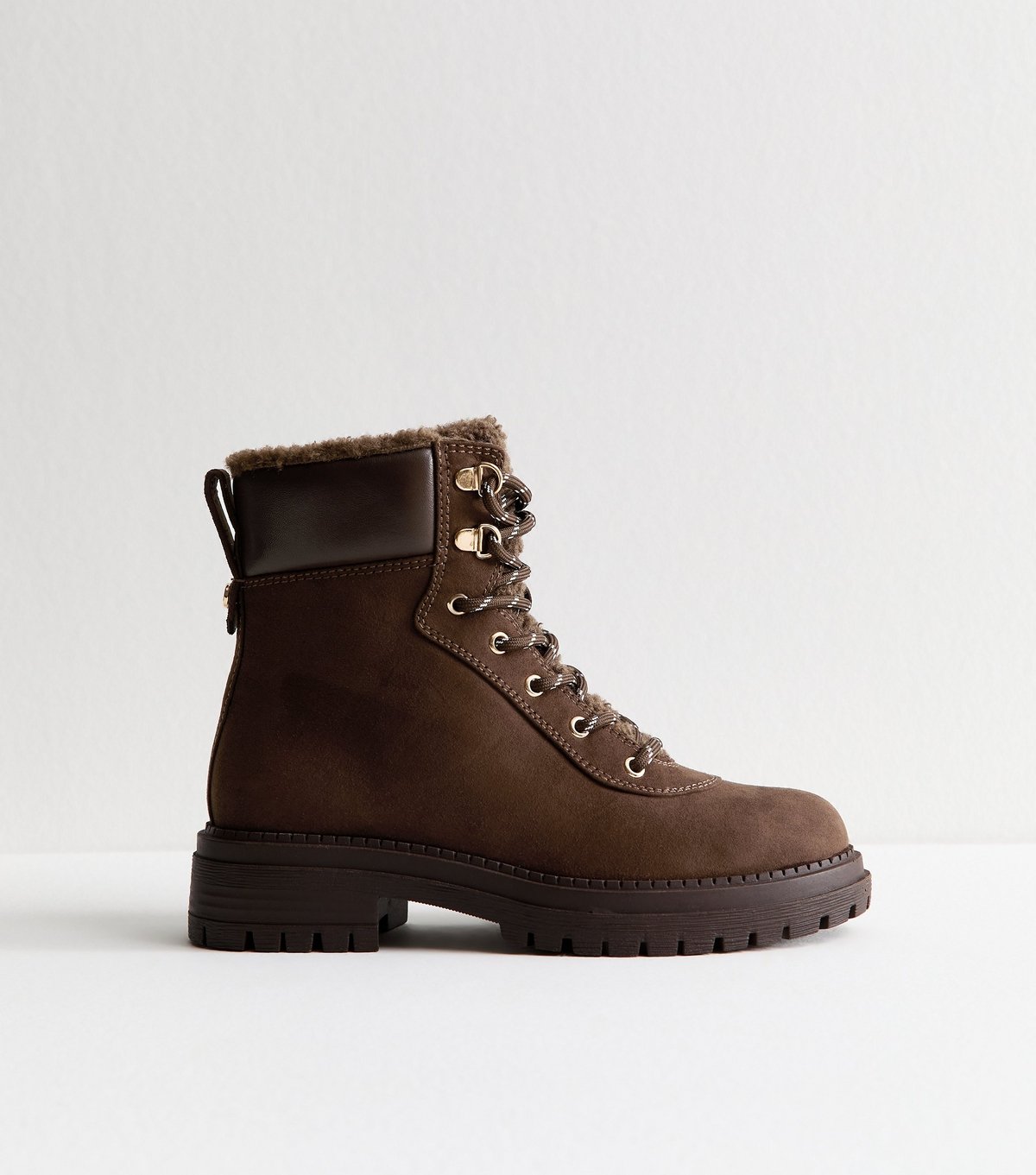 The New Look Rust Brown Faux Fur Lined Lace-Up Ankle Boots is available in sizes 6.