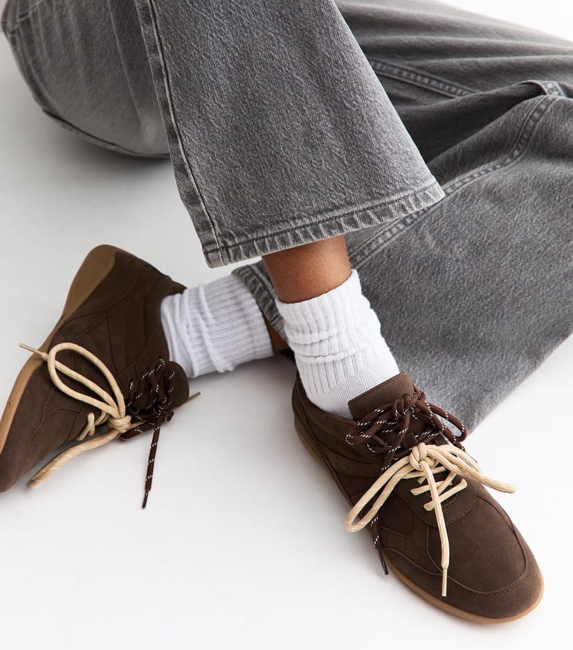 The New Look Rust Faux Suede Double Lace Trainers is available in sizes 3, 4, 5, 6, 7, 8, 9.
