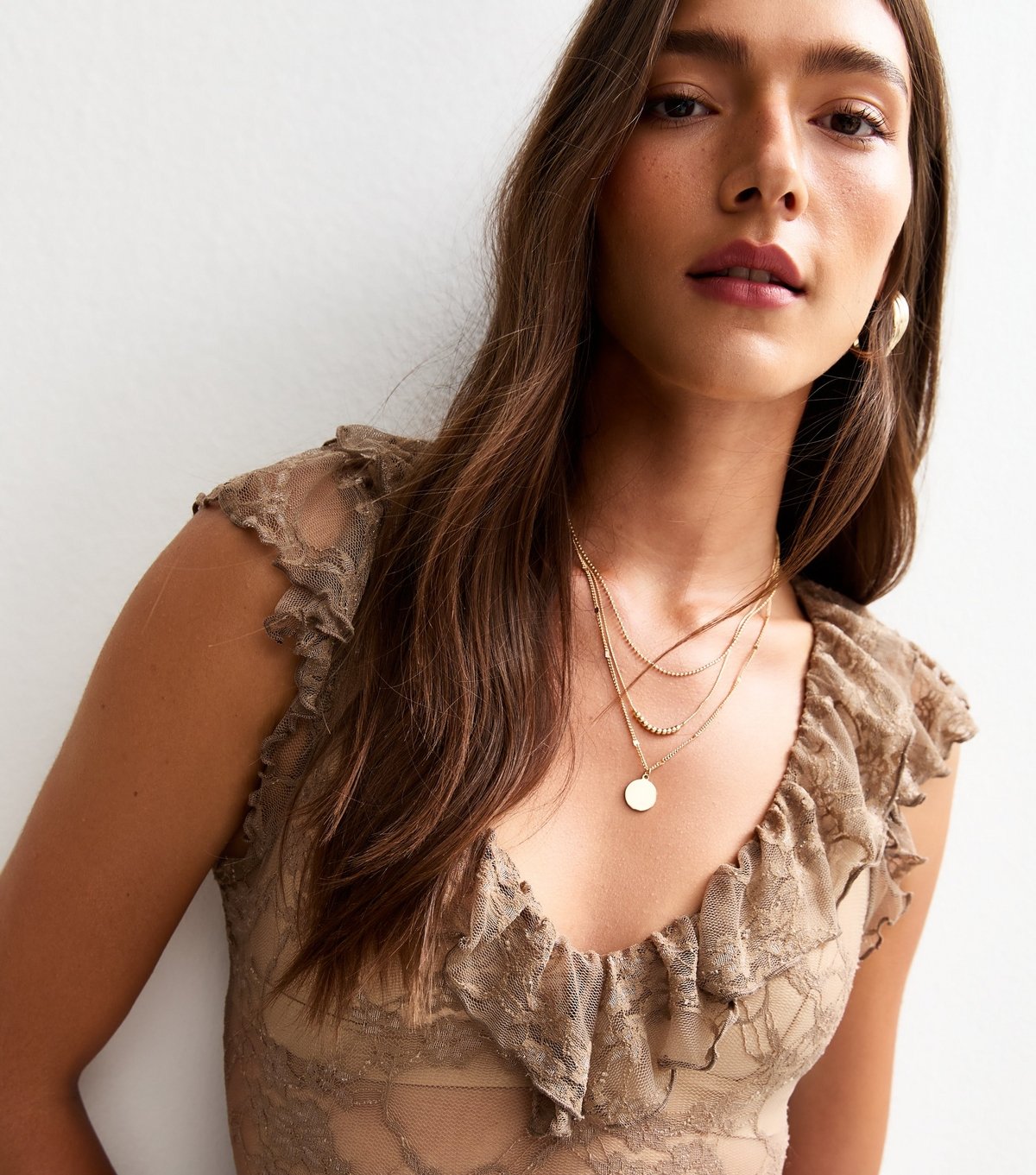 The New Look Rust Floral Lace Sheer Bodysuit is ideal for evening, special occasions.