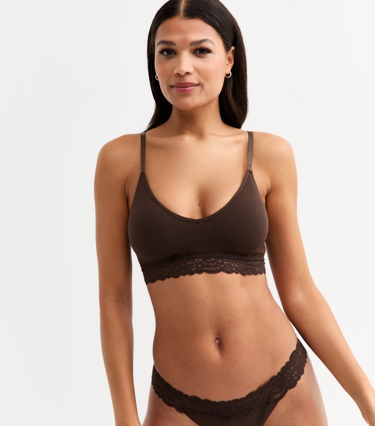 The New Look Brown Ribbed Lace Trim Bralette is ideal for casual, everyday.