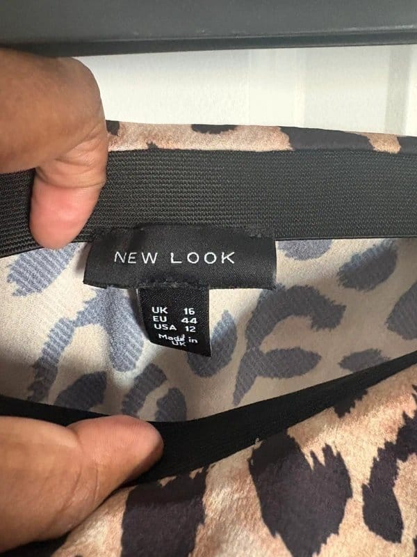 The New Look Brown Satin Leopard Midi Skirt UK16 is available in sizes L.