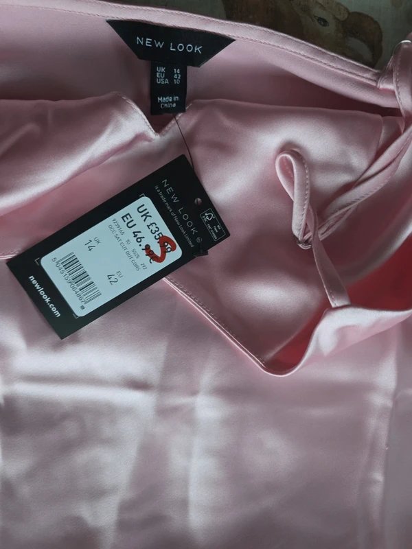 The New Look Satin Midi Dress in Rose is available in sizes M.