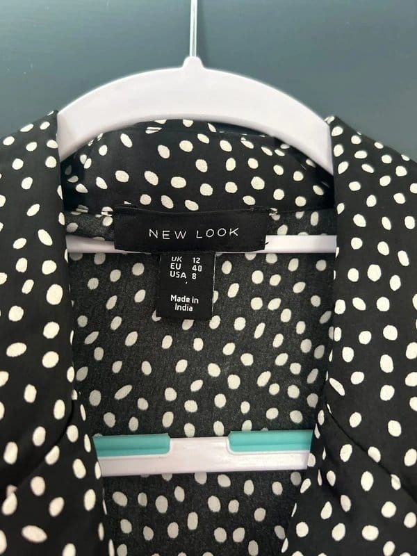 View Vinted's returns policyPlayful polka dot shirt from New Look in black and white. Made from satin fabric with a classic collar and button-front closure. Perfect for casual or smart-casual occasions.