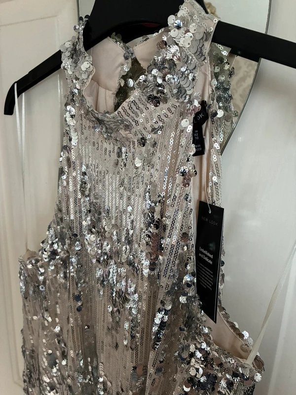 The New Look Sequin Dress with Champagne Embellishments is available in sizes M.