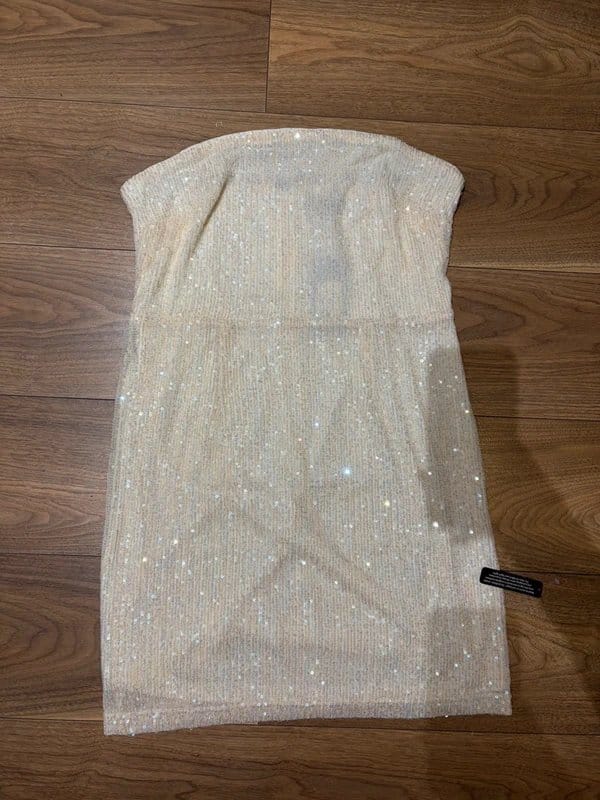 The New Look Cream Sequin Bandeau Dress is available in sizes L.