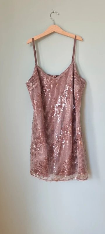 The New Look Sequin Dress in Pink/Beige is available in sizes M.