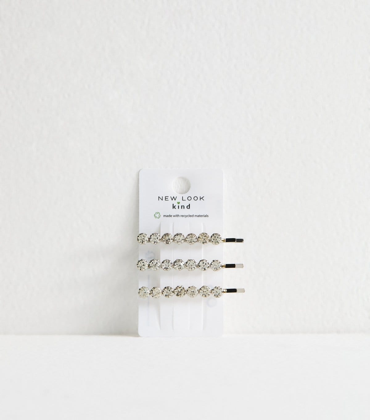 The New Look Silver Diamante Embellished Hair Slides Pack of 3 is available in sizes one size.