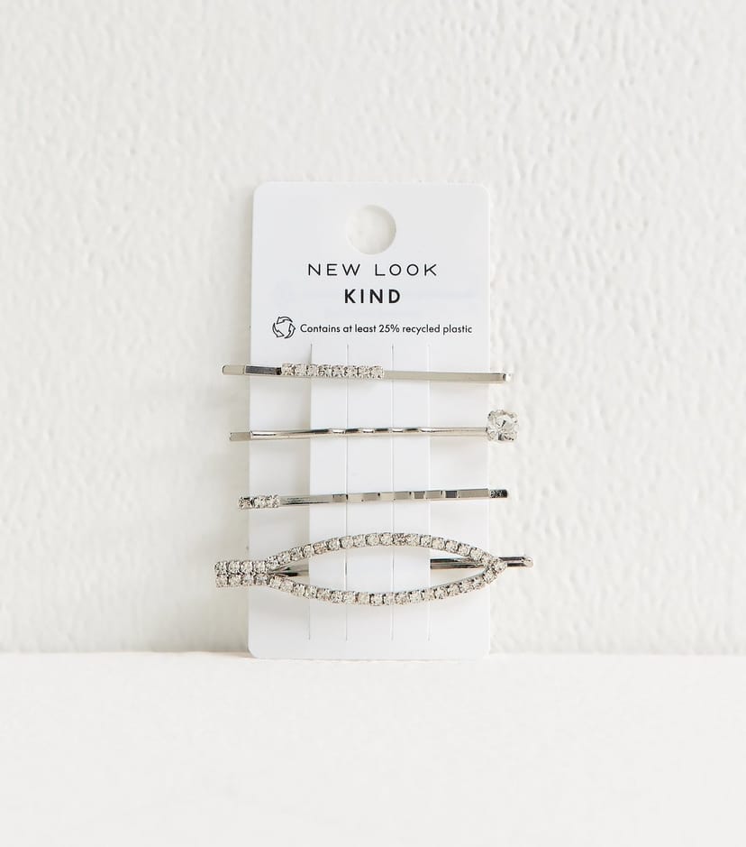 The New Look Silver Tone Diamante Hair Clips Pack of 4 is available in sizes ONE SIZE.