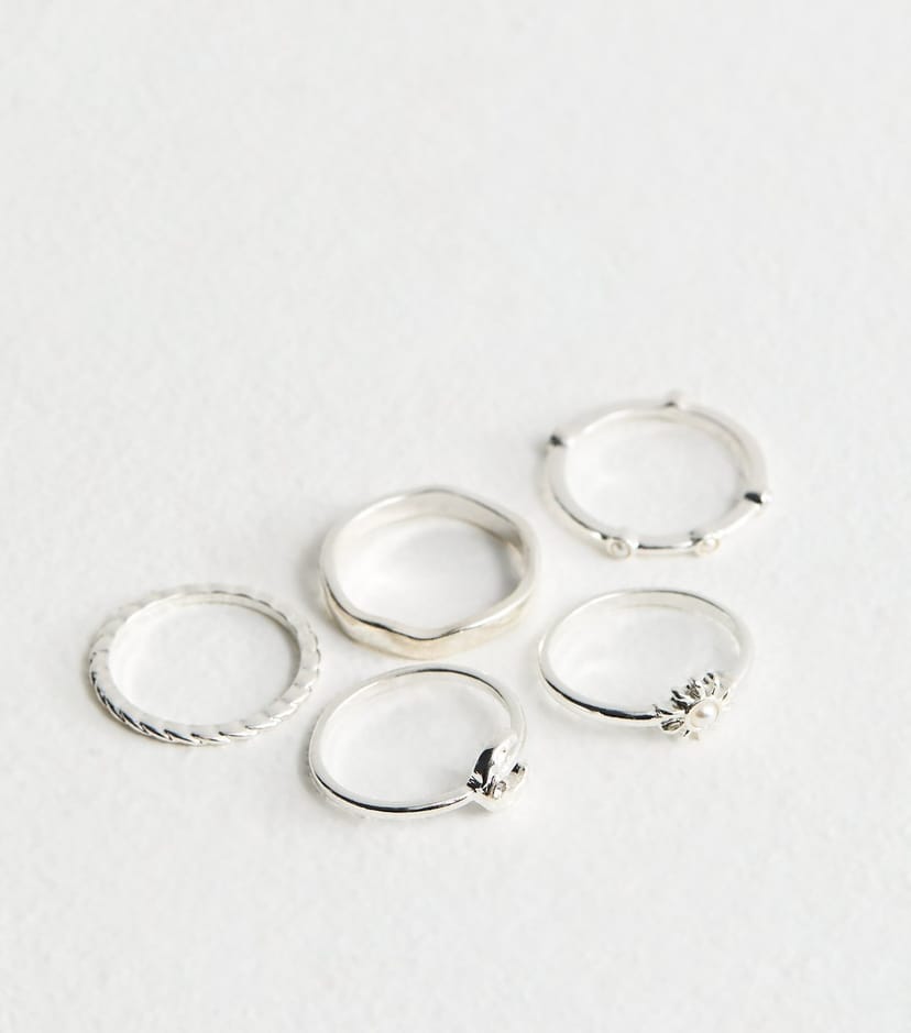 The New Look Silver Tone Sun and Moon Rings Pack of 5 is made from faux pearl, metal.