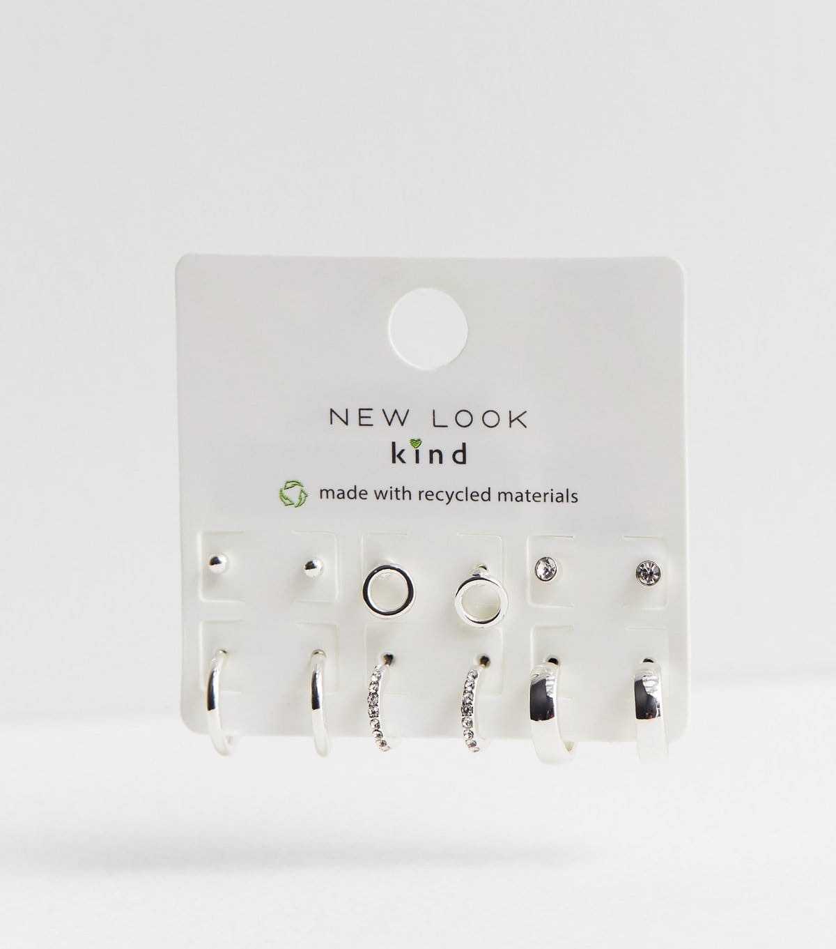 Elevate your accessory collection with this versatile pack of six silver tone earrings from New Look. Featuring a mix of hoops and studs, these earrings are perfect for any occasion. The diamanté detailing adds a touch of sparkle.