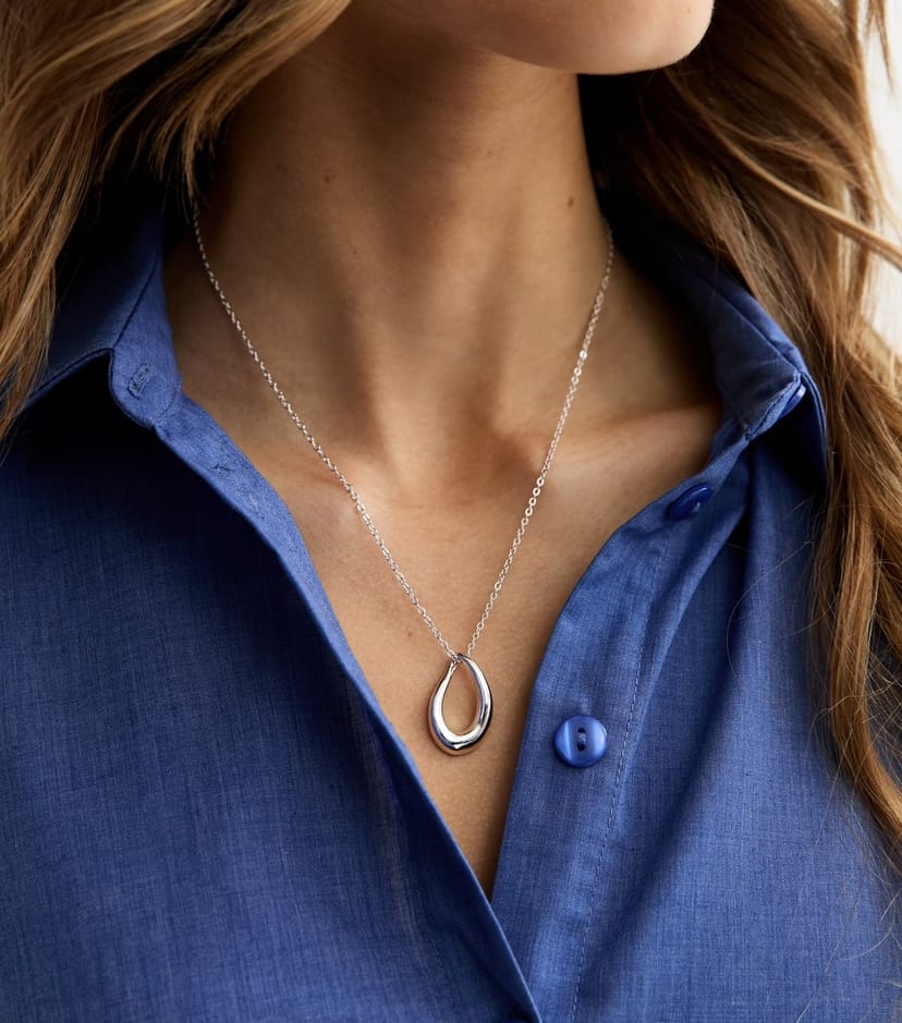 The New Look Silver Tone Abstract Oval Pendant Necklace is ideal for casual, evening, formal.