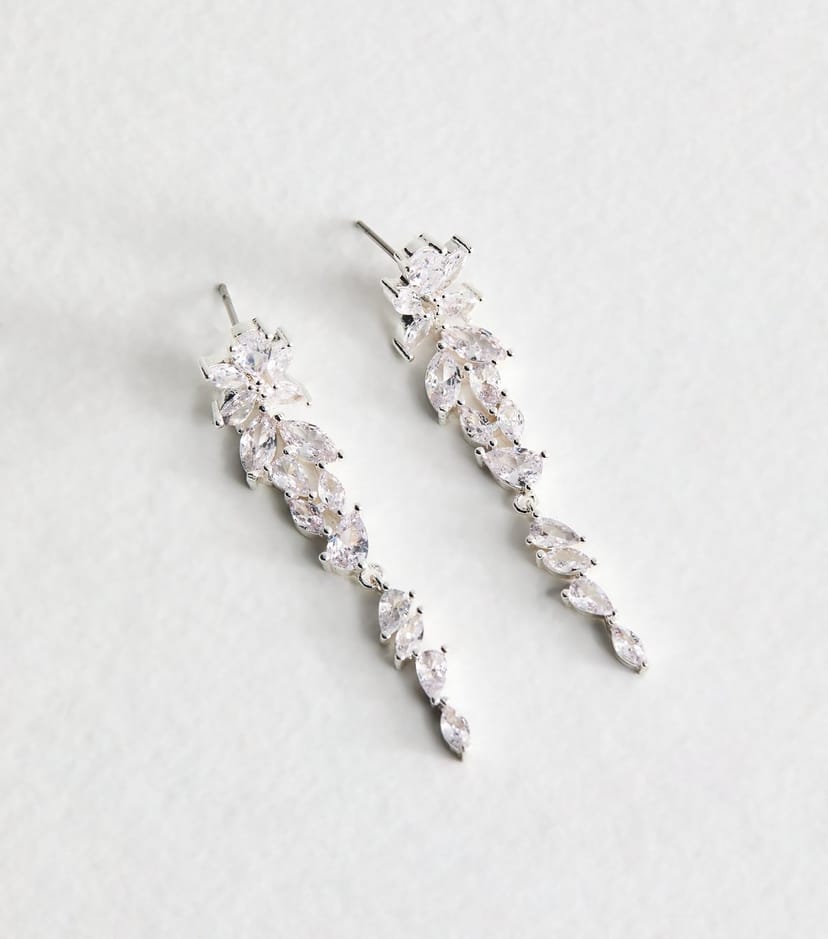 The New Look Silver Tone Cubic Zirconia Leaf Tassel Earrings is ideal for special occasion, evening, party.