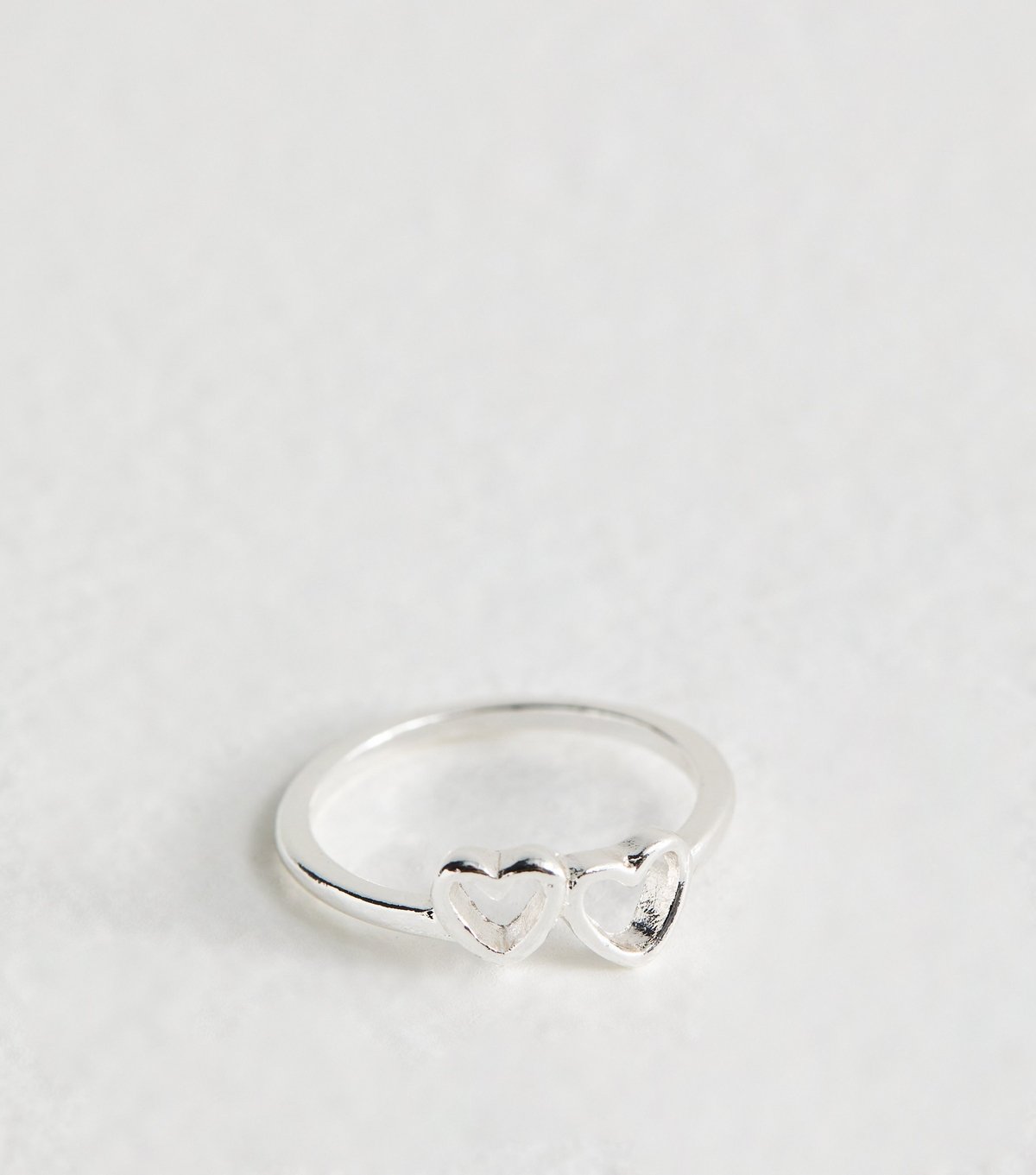 The New Look Silver Tone Cut Out Heart Charm Ring is available in sizes L, S.
