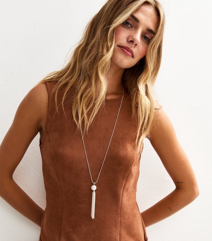 The New Look Silver Tone Faux Pearl Tassel Charm Necklace is ideal for evening, special occasions.