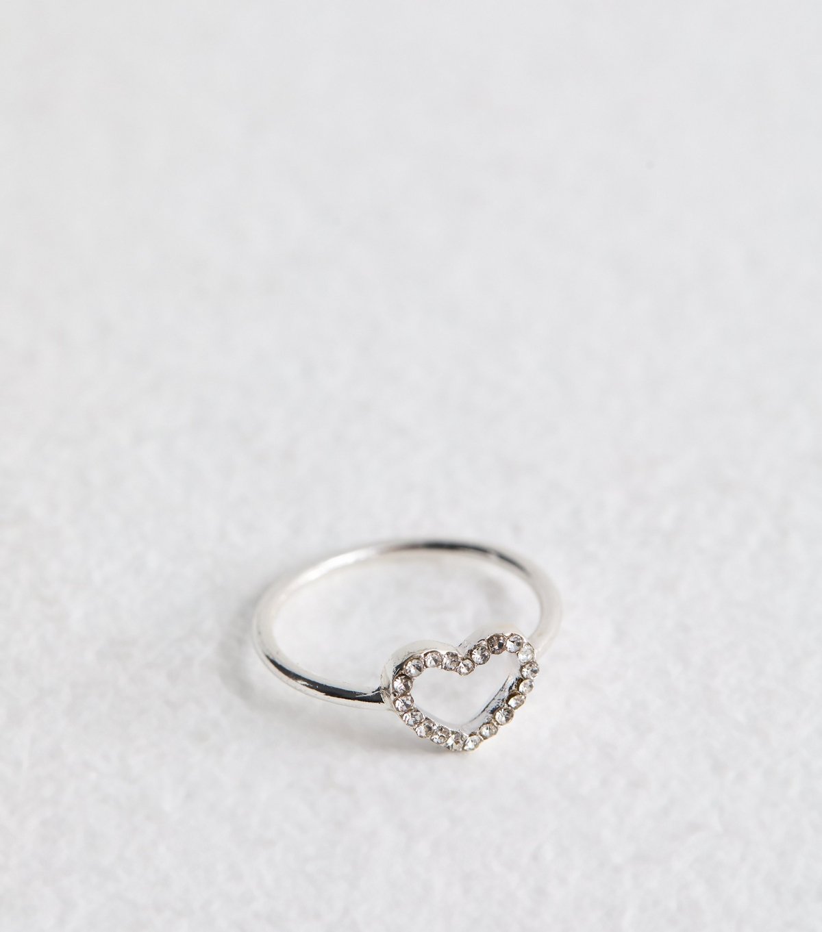 The New Look Silver Diamanté Heart Ring is available in sizes L, M.