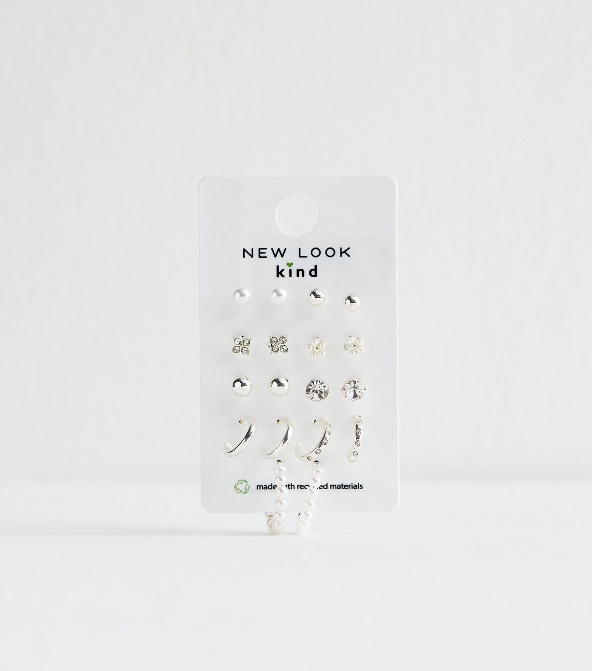 The New Look Silver Tone Pack of 9 Faux Pearl Stud Earrings is made from metal, faux pearl, diamanté.