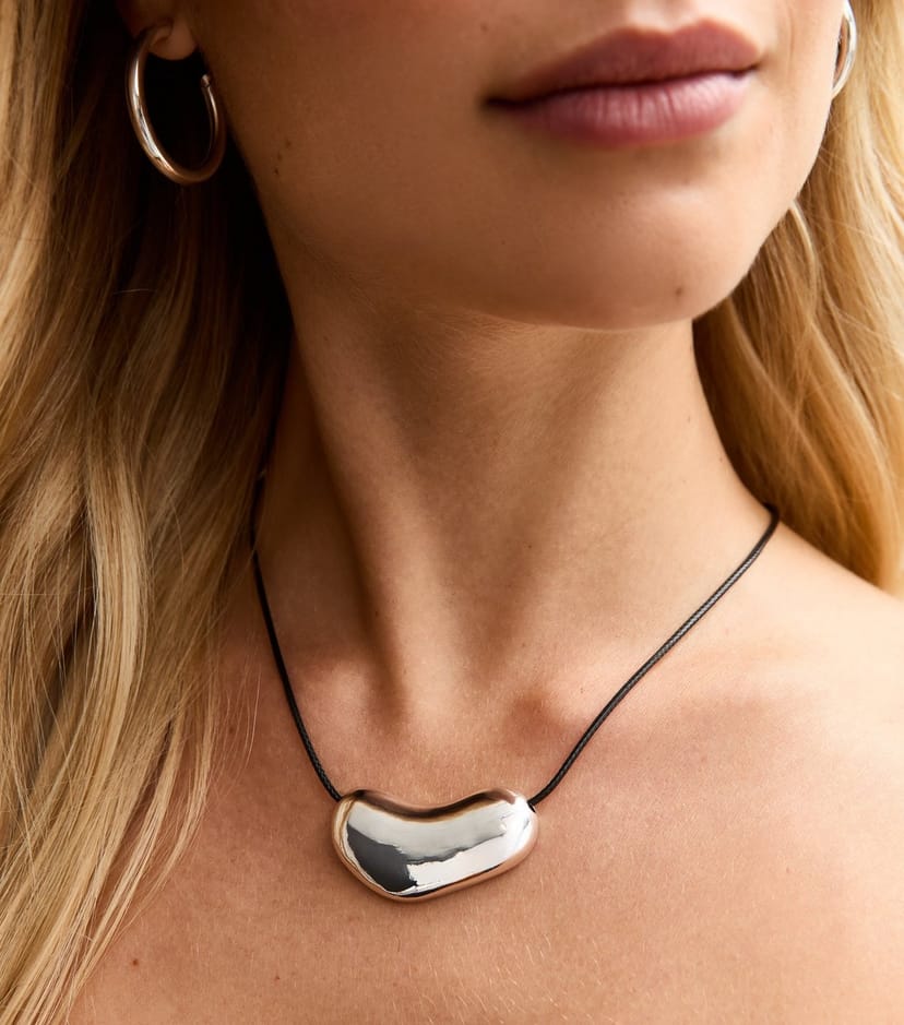 This silver tone necklace from New Look features a sleek oval dome pendant on a rope chain. It has an adjustable clasp for a customised length, perfect for adding a touch of textural contrast.