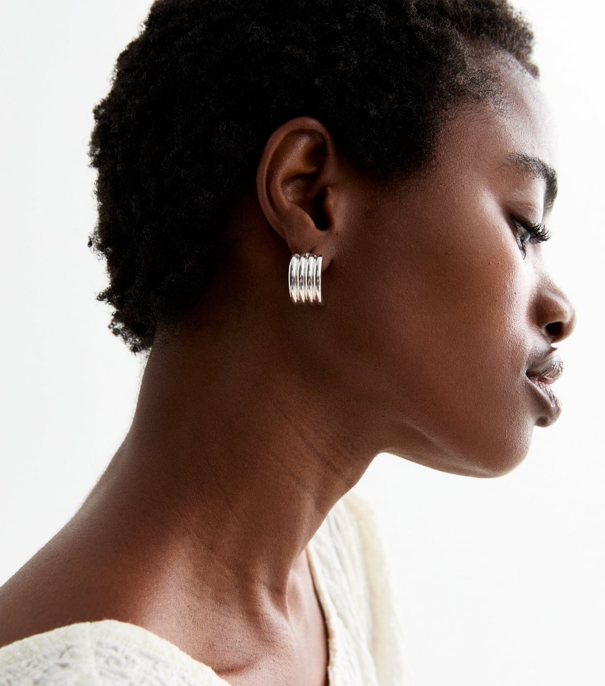 Stylish silver-tone textured curved tube earrings by New Look. Perfect for everyday styling, these earrings feature a curved tube design and a textured finish. Secured with a press stud, they are ideal for pierced ears.