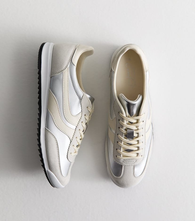 The New Look Silver Faux Leather Panelled Trainers is available in sizes 5.