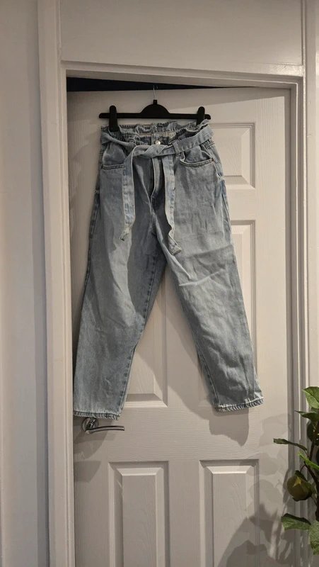 The New Look Paperbag Jeans in Light Blue is available in sizes M.