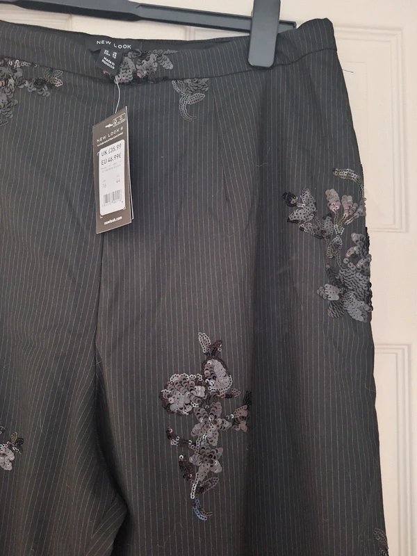 The New Look Embellished Wide Leg Trousers in Black is available in sizes XXXL, XXL, XL, XS, L, M, S.