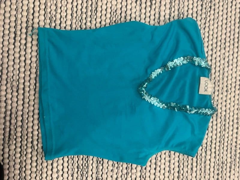 See all outfit ideasStylish New Look sleeveless top in turquoise with a sequin embellished neckline. Perfect for casual outings or beachwear.