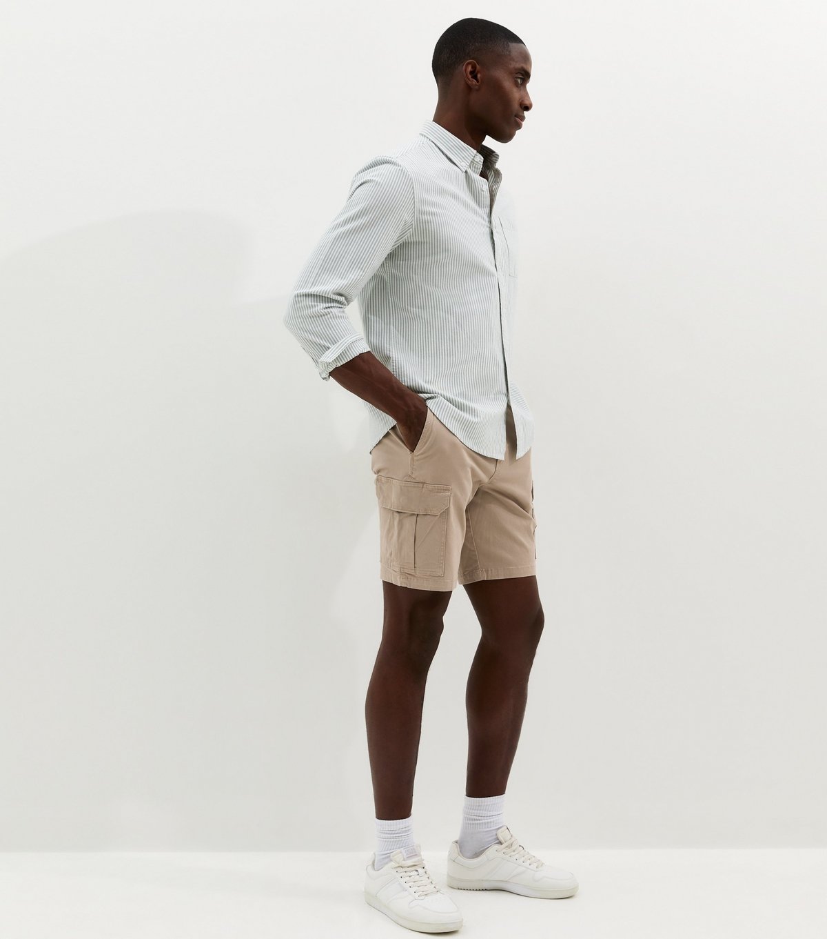 The New Look Stone Cotton Cargo Shorts is available in sizes 28R, 30R, 32R, 34R, 36R, 38R.
