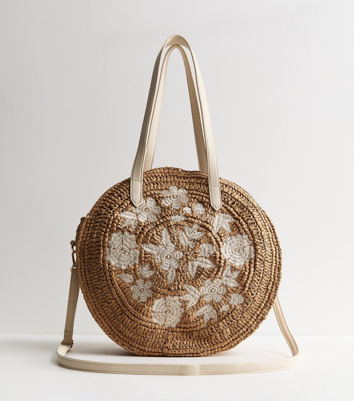 The New Look Stone Floral Raffia Circular Bag is made from woven raffia.
