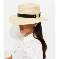 The New Look Stone Straw Boater Hat with Buckle is made from straw, faux leather.