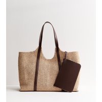 The New Look Stone Woven Hobo Tote Bag with Zip Pouch is available in sizes ONE SIZE.