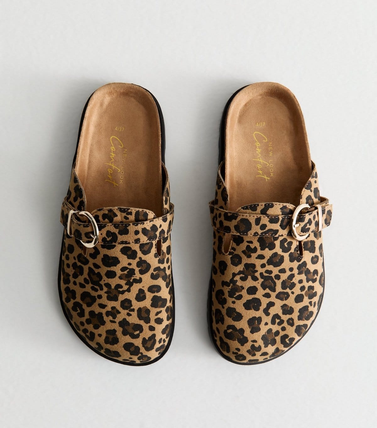 The New Look Brown Leopard Print Suedette Clogs is available in sizes 9.