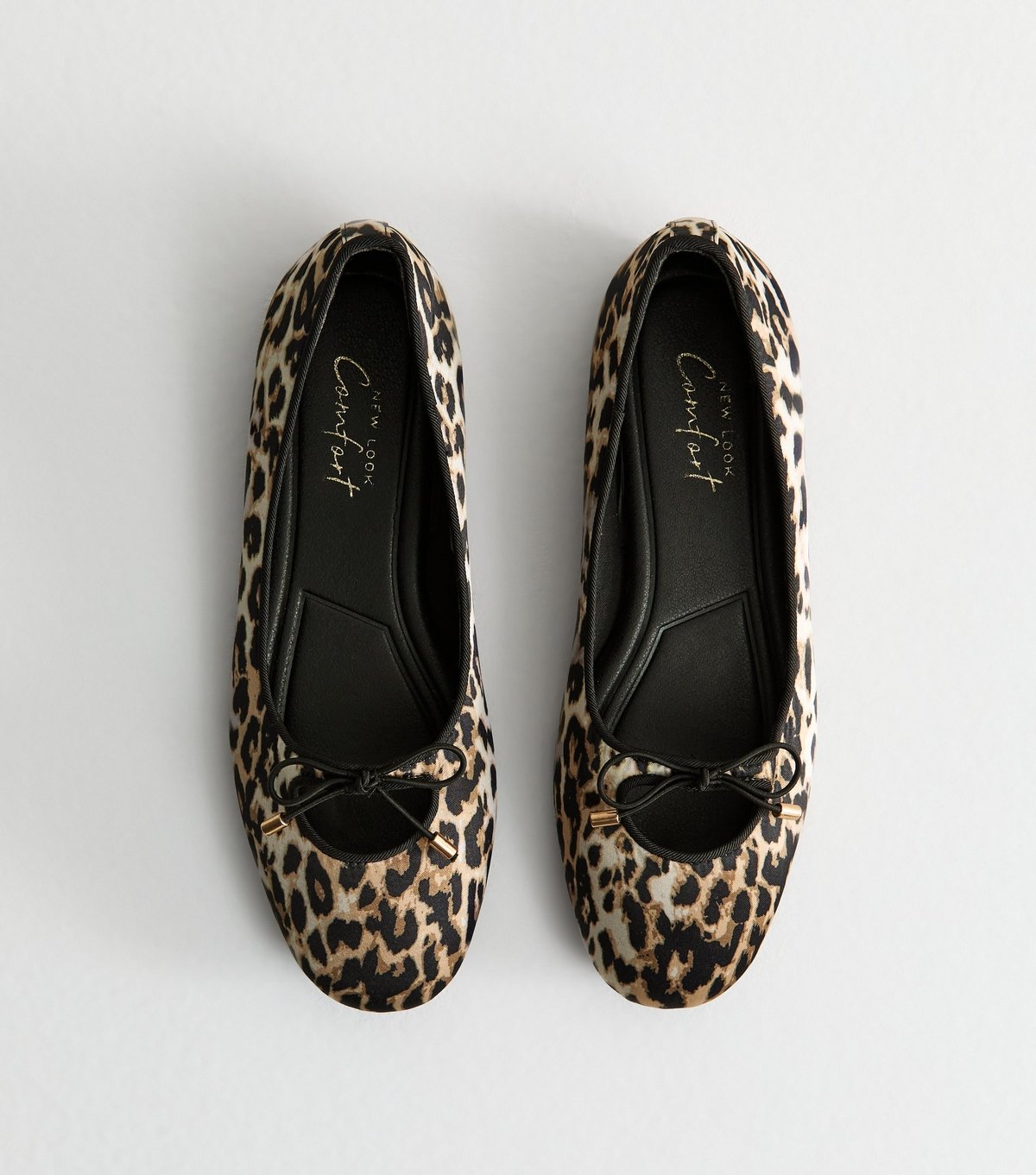 The New Look Brown Satin Leopard Print Ballet Pumps is available in sizes 9.