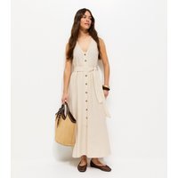 The New Look Cream V-Neck Button Through Midi Dress is ideal for casual, summer, daytime.