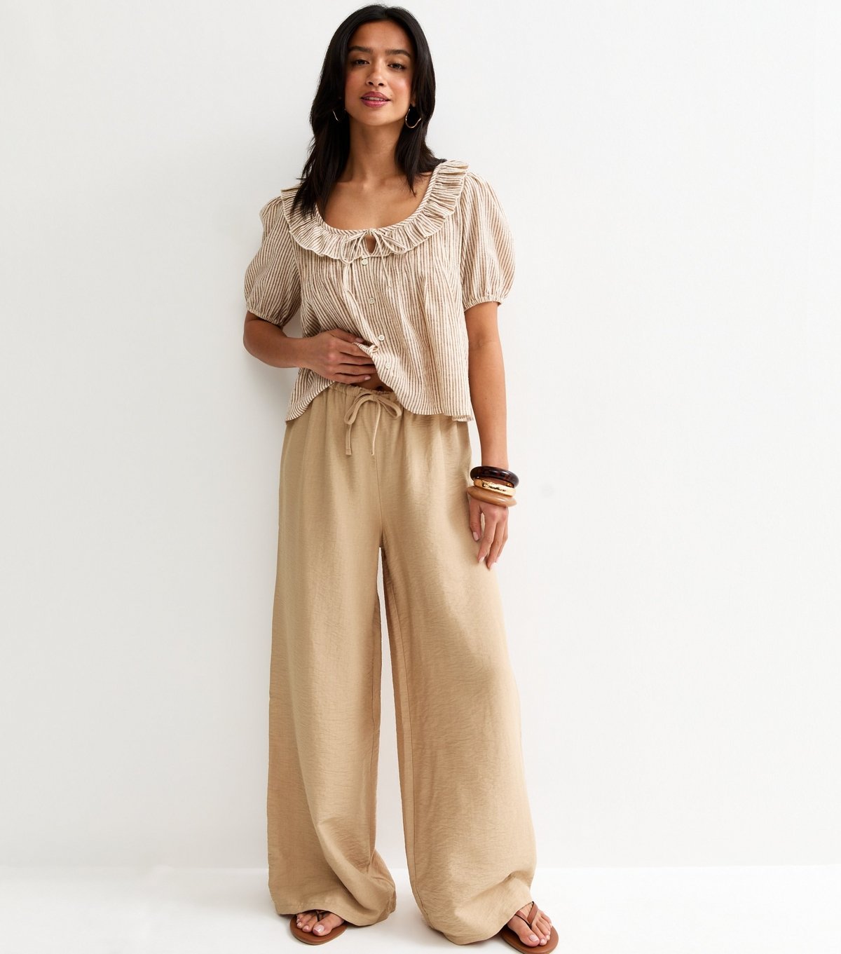 The New Look Stone Wide Leg Trousers for Petite Women is available in sizes 10, 12, 14, 16, 6, 8.