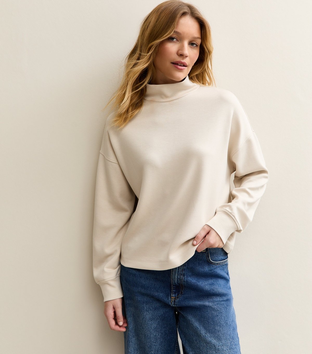 The New Look Stone Funnel Neck Sweatshirt is made from jersey.