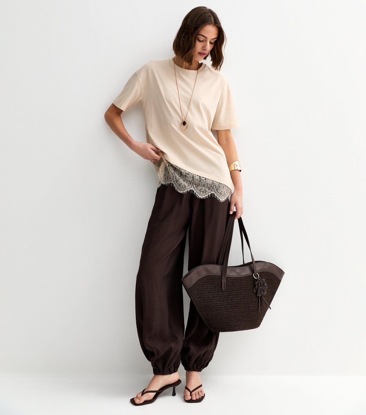 The New Look Stone Cotton Scalloped Lace T-Shirt is ideal for casual, everyday.