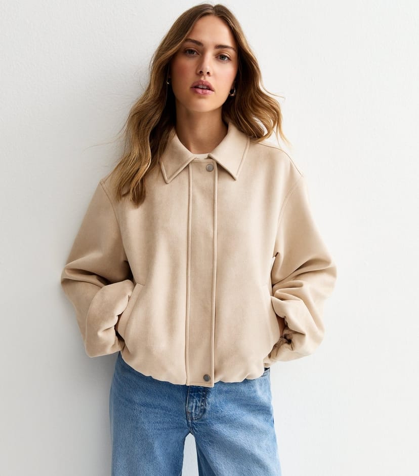 The New Look Stone Faux Suede Bubble Hem Jacket is made from faux suede.