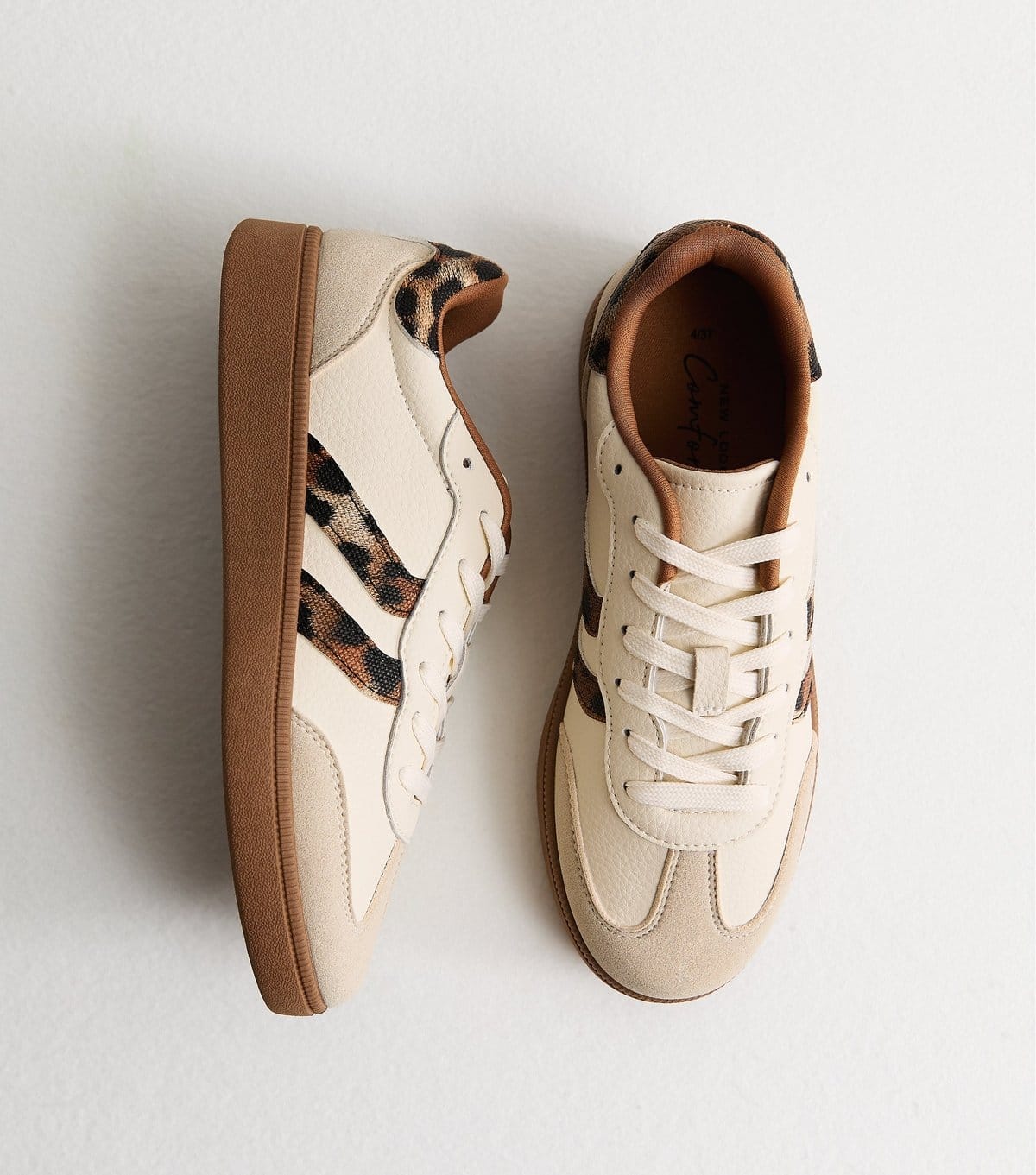 Sporty and comfy stone-hued trainers with a bold twist. Featuring leopard-print trims and faux suede panelling, these trainers are perfect for a casual yet stylish look. Made with our Comfort features, they are completely vegan-friendly.