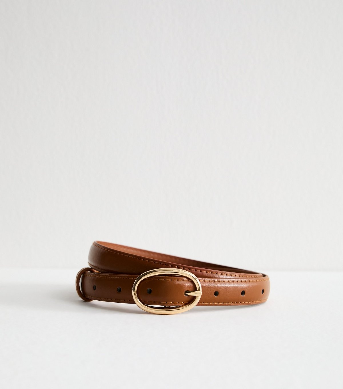 The New Look Tan Oval Buckle Faux Leather Belt is made from faux leather.