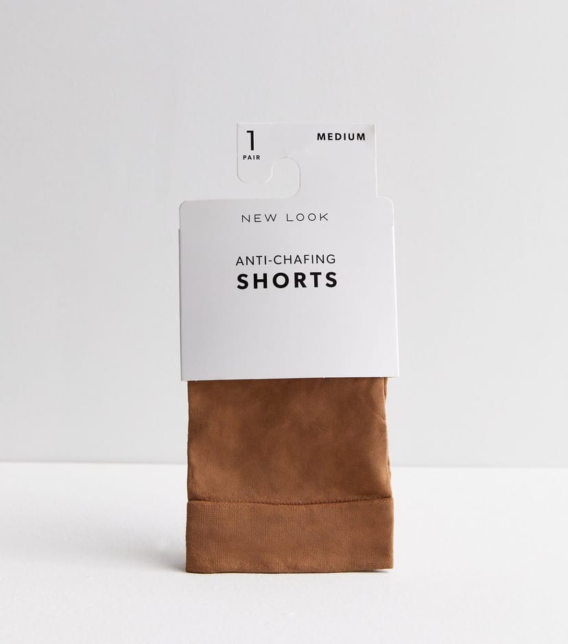 The New Look Tan 80 Denier Anti-Chafing Shorts is available in sizes s, xs.