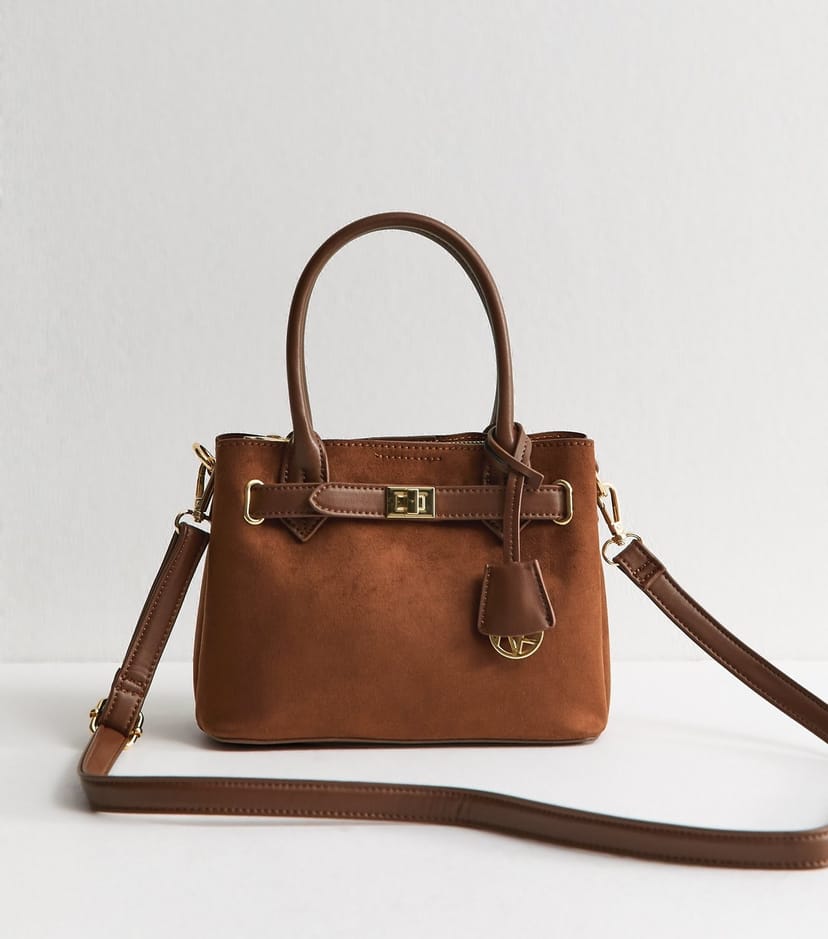 The New Look Tan Faux Suede Cross Body Bag is available in sizes one size.