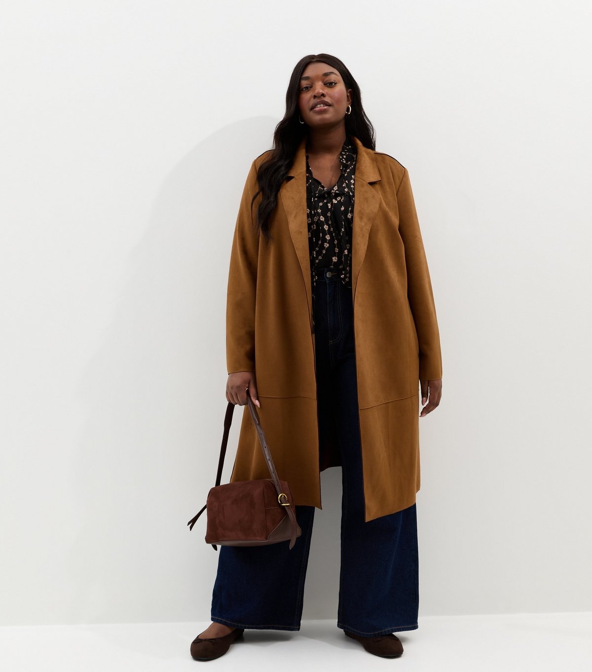 The New Look Tan Faux Suede Wrap Coat for Women is made from faux suede.