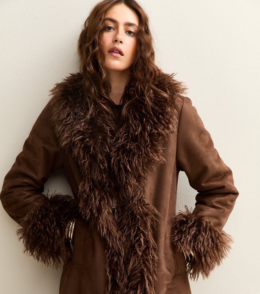 The New Look Tan Faux Shearling Coat is made from faux suede.