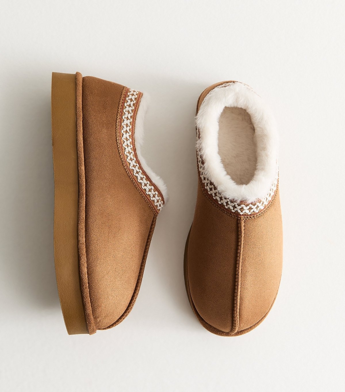 The New Look Tan Faux Suede Slipper Boots is made from faux suede, faux fur.